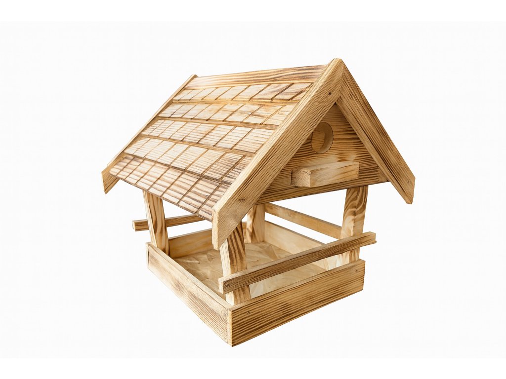 Kŕmidlo je navrhnuté s priestrannou strechou, ktorá chráni krmivo pred dažďom a snehom, a otvorenými bokmi pre pohodlný prístup vtáčikov. Vďaka stabilnej konštrukcii a priestrannému zásobníku je vhodné na rôzne druhy zmesí semien, orechov či lojových gúľ.