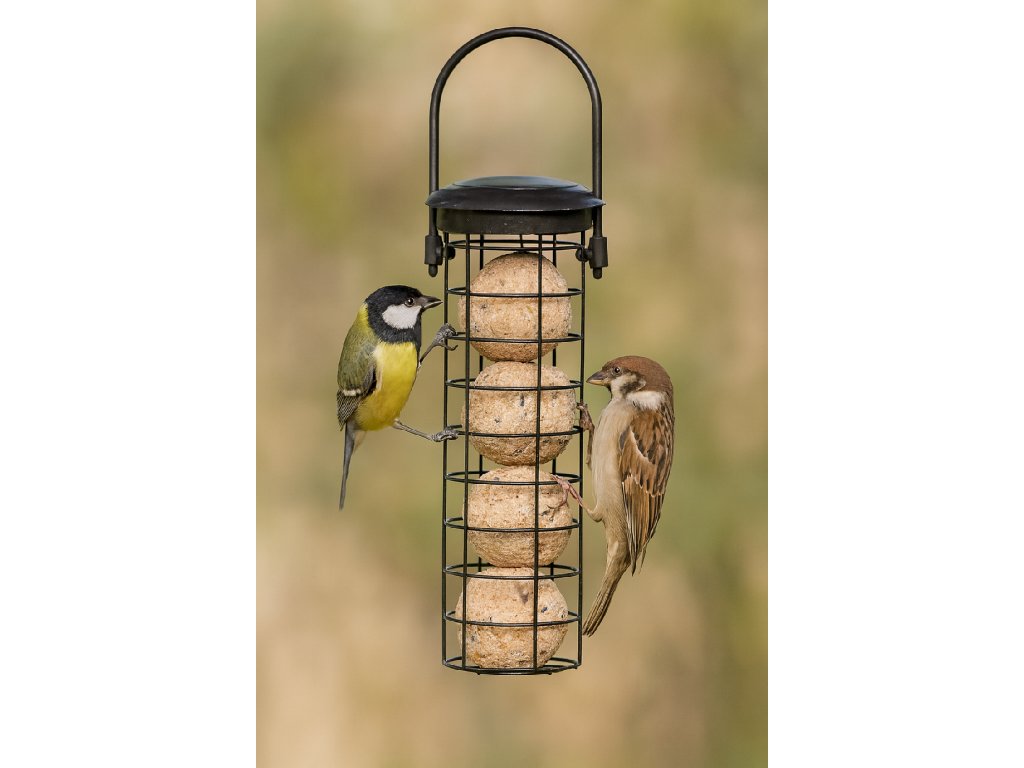 Toto robustné kovové kŕmitko je navrhnuté špeciálne na lojové gule (ale aj iné guľové krmivá). Umožňuje jednoduché zavesenie na stromček, háčik alebo špeciálny stojan, pričom zabezpečuje dobrý prístup pre vtáky a zároveň udržiava krmivo čisté a suché.