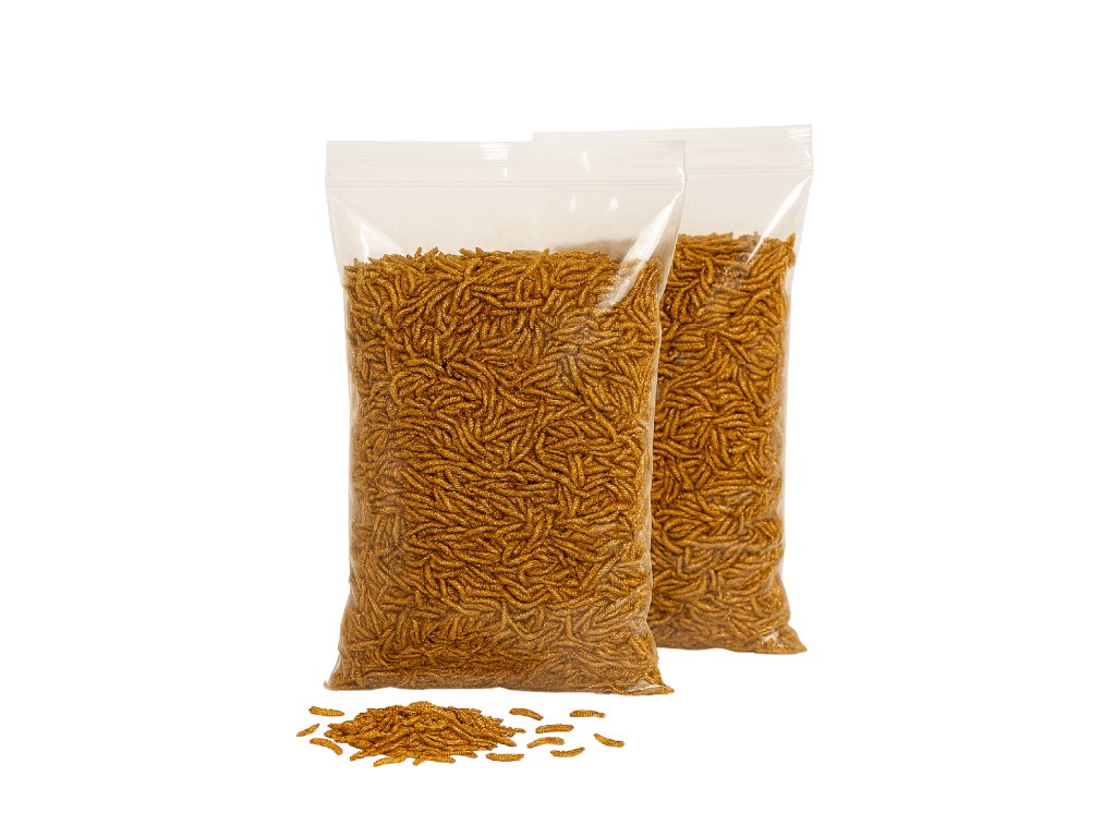 - Skladovanie: Živé múčne červy uchovávajte v chladničke pri teplote 5-10°C. Sušené múčne červy skladujte na suchom a chladnom mieste.